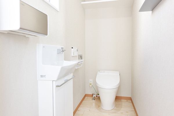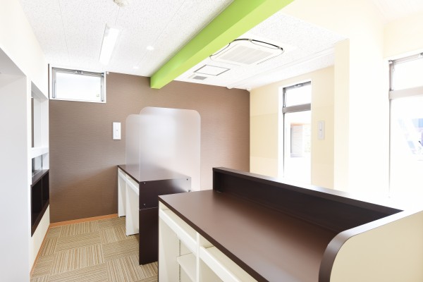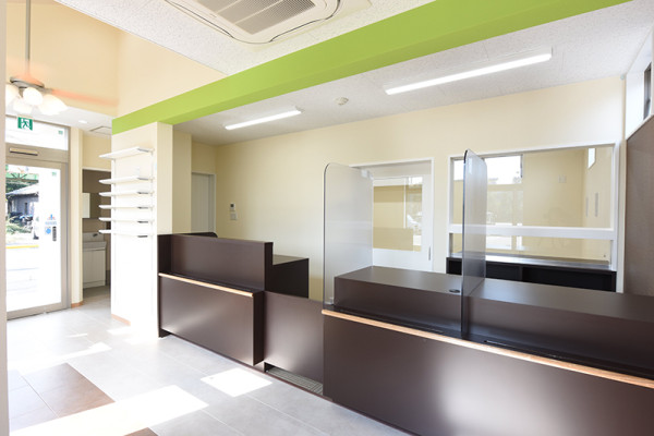 下関市内のエスマイル薬局松小田店の新築工事です。建物全体はペールトーンで統一し、薬局として、清潔感あふれる、優しい表情を表現しました。LANや配線経路、室外機の位置など、メンテナンスが容易な計画になっており、水廻りや動線なども非常に使い勝手が良く、機能性も重視した造りとしています。