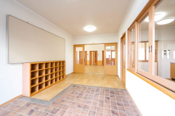 「ただいま」が聞こえてきそうな明るいエントランス。「おかえりなさい」と声を掛けることのできる事務室とのつながり。