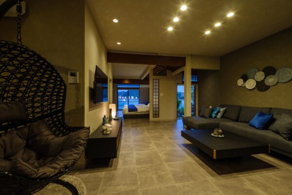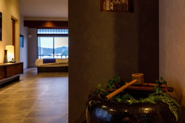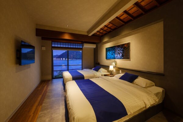 室内から見える海の色が映えるように室内のカラーはモノトーンにし、宿名でもある「うみいろ」をより感じていただける客室です。