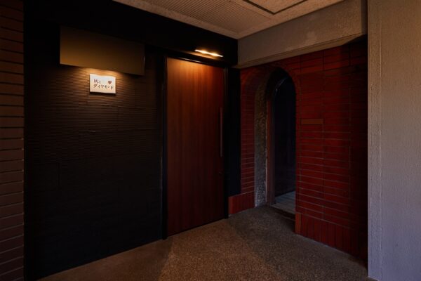 外観は内観の軸となっている「塗り壁」と「木」の質感に合わせた設えにした。また外部の照明照度を敢えて下げたことによって「隠れ家的」な名店の雰囲気に。