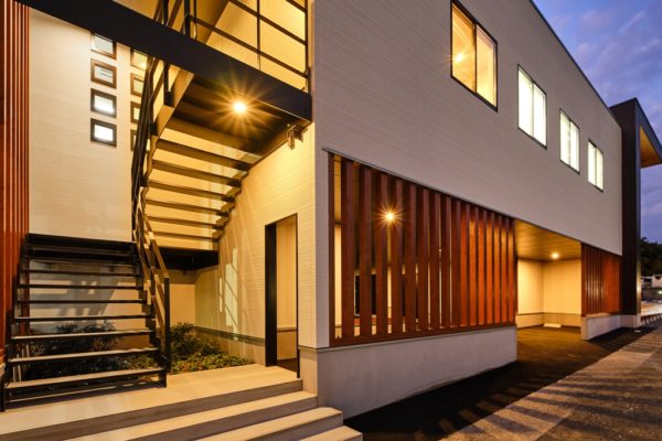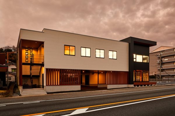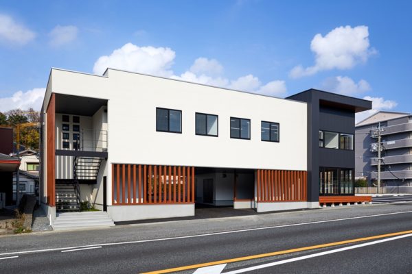 株式会社HALデンタルアートは下関市勝谷新町の国道2号線沿いに建つ木造2階建ての歯科技工所です。