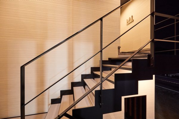 外観はキューブ型の中に動きを入れました。3つのDifference in heightに木格子、薄い庇、リブパネルという、細く魅せることを意識した素材・設計数値で計画し、精密かつ繊細な歯科技工の業務風景を表現しました。