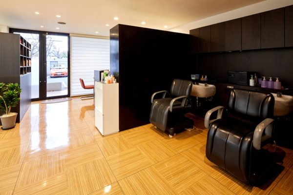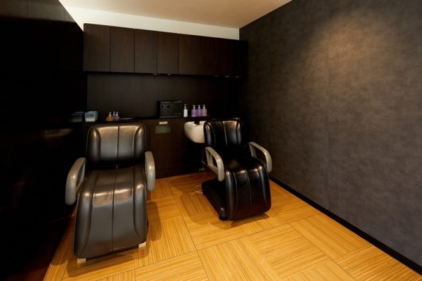 また、シャンプースペースは、オープンな空間ですが、家具の色や照明計画により、カットフロアとは別空間を演出。