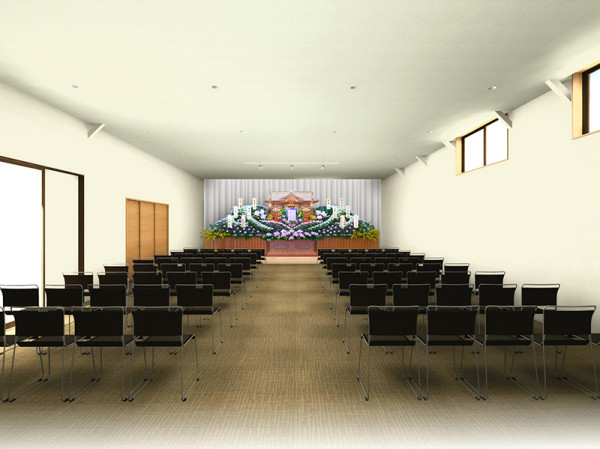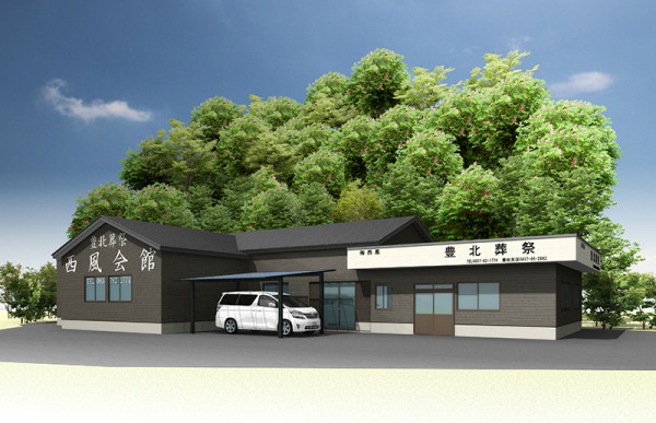 下関市内の(有)西風 豊北葬祭様のコンバージョンです。内装(淡い色で統一)、外装(黒の木目調サイディングを採用)は共に落ち着きのある仕上がりになりました。お施主様のご要望(既存の事務所からの動線、水廻り、親族控室、高い天井)を全て取り入れ、倉庫として使用していたスペースを法的基準にも適合した上で、葬儀場に用途変更を致しました。